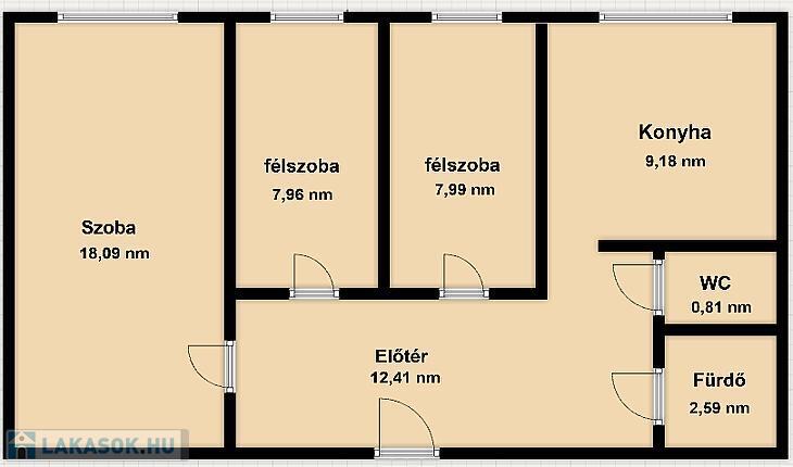 A szobákban faparketta, a többi helyiségben pedig járólap található.
