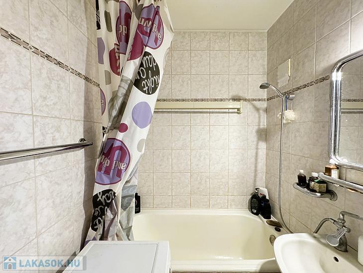 A fürdőszoba káddal rendelkezik, a WC egy külön helyiségben kapott helyet.