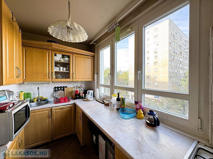 A konyhája ablakos, valamint új konyhabútorokkal rendelkezik.