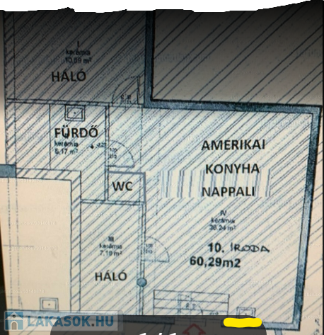 Amerikai konyha- nappali plusz két külön bejáratú szoba (háló), épített zuhanyfülkés fürdő, valamint különálló WC kézmosóval.