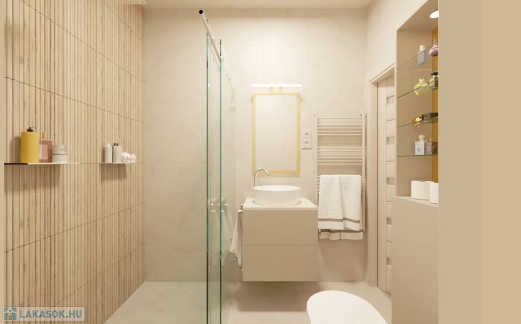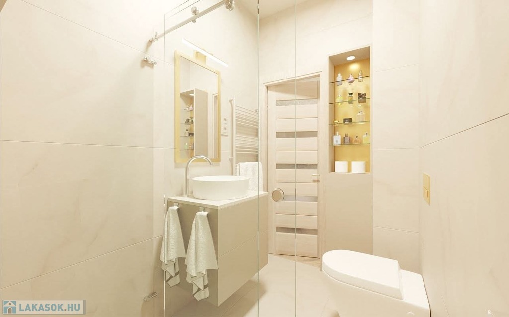 Igényesen kialakított fürdőszoba, modern szaniterekkel