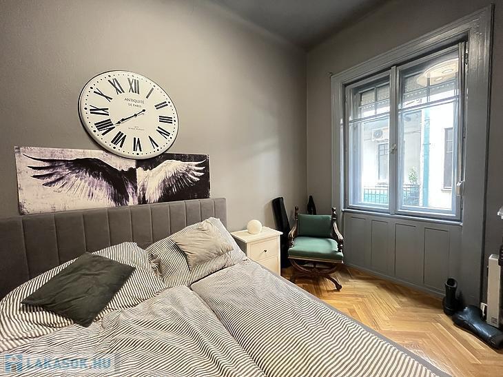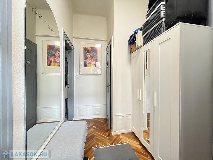 A szoba faparkettás, a vizeshelyiségek pedig járólaposak.