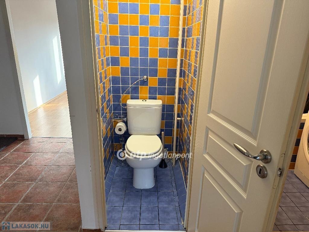 A lakás a második emeleten van. Praktikus elosztású. Külön van a WC a kádas fürdőszobától. A konyhában van hely egy kétszemélyes étkezőhöz. A belső burkolatok 10-12 éve voltak cserélve, ragyogó állapotban vannak. A lakás ára tartalmazza a tűzhelyen kívül a sütő, mosógép, hűtőszekrény árát is. A nappalihoz tartozik egy franciaerkély. A lakás világos, déli fekvésű. Minden ablakból csak a zöld növényzetet láthatjuk. A lakáshoz tartozik rendhagyó módon egy félemeleti tároló, ami a szomszédos két lakással közösen használható. Saját igényesen elkerített pincerekesz is része az ingatlannak.