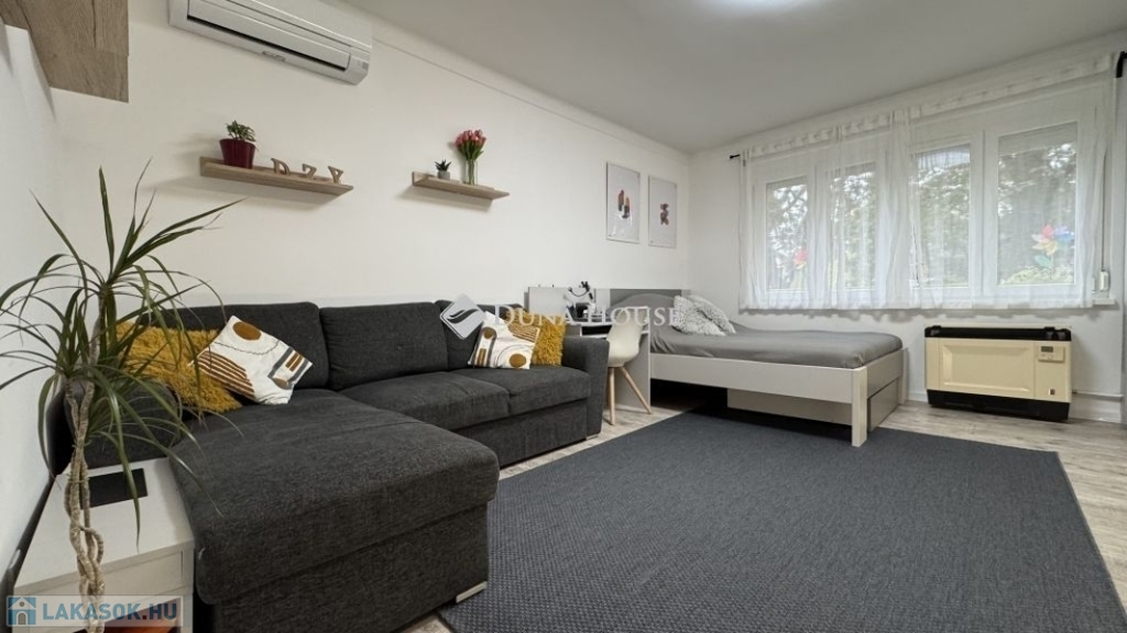 Eladó, 47m²-es 2 szobás, lakás a Folyondár utcában!Akár teljes bútorzattal is megvásárolható!!Az ingatlan 2021-ben teljes körű felújításon esett át, amelynek során minden nyílászáró, burkolat és gépészet megújult. A 47 m²-es, keleti tájolású lakás a földszinten helyezkedik el, és a lépcsőházból megközelíthető, osztatlan közös kertrésszel rendelkezik, melyet szokásjog alapján saját használatban van. az aktuális tulajdonos által.Főbb jellemzők:Alapterület: 47 m²Elrendezés: nappali, konyha, hálószobaFűtés: padlófűtés, konvektorKlíma: vanMinőségi beépített bútorok, új konyhabútorEgyedi, modern belső megoldásokPrivát felszíni parkoló!!Rezsi:Közös költség: 20 000 Ft/hó (kertész, felújítási alap, kerti víz)Gáz átalány: 6 800 Ft/hóVillany: 9 000 Ft/hóVíz: 6 000 Ft/2 hóKörnyék, közlekedés:A Folyondár utca egy csendes, zöldövezeti részen található, körbezárt lakóparkban, mégis kiváló közlekedési adottságokkal. A 65-ös és 165-ös buszmegálló néhány perc sétára elérhető, a közeli Kolosy tértől pedig villamosokkal gyorsan megközelíthető a belváros. A mindennapi kényelemről a közelben található Újlaki iskola, bolt, a híres Daubner cukrászda, az uszoda, valamint a GOBUDA bevásárlóközpont gondoskodnak.Az ingatlan ideális választás pároknak, fiataloknak vagy befektetőknek egyaránt, hiszen a környék keresett és kiadhatósága is kiváló.