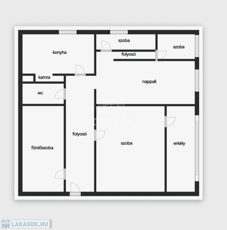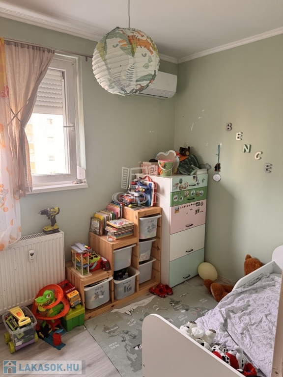 A lakás jó elosztású, két hálószoba és két félszoba biztosítja a kényelmes lakhatást.