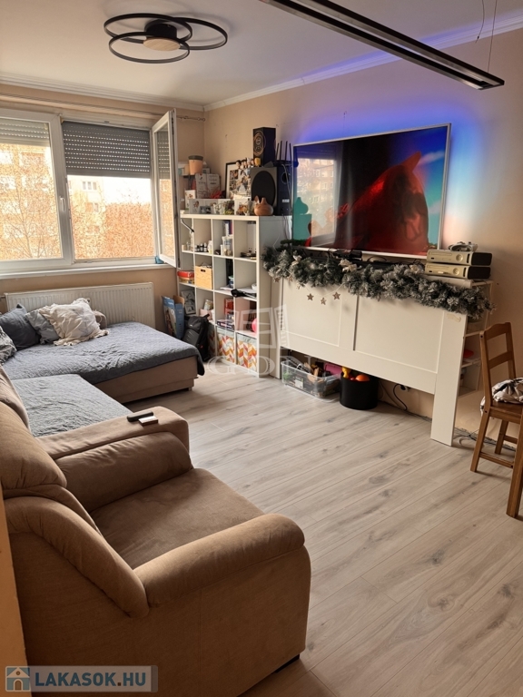 A lakás a 5. emeleten helyezkedik el, világos és jól atszellőztethető.