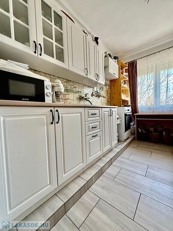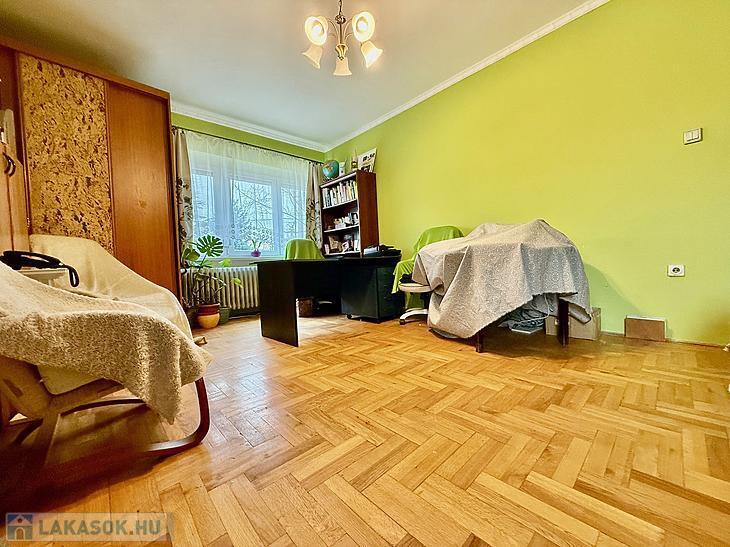 Az ingatlan egy három lakásos 80-as években épült téglaépítésű szigetelt ház, 1. emeletén található.