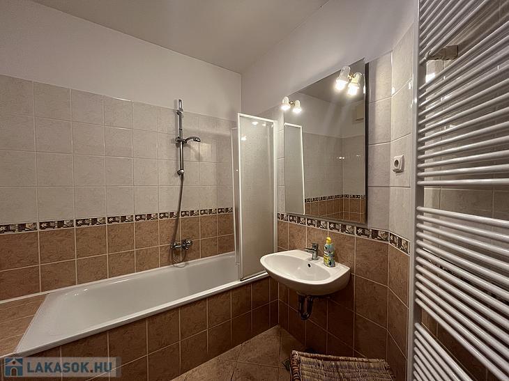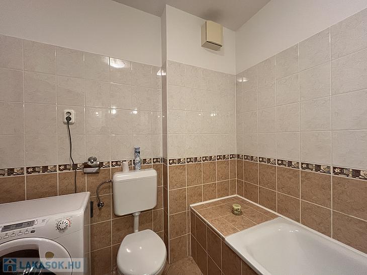 A fürdőszobában kád van, a mosógép ki-és beállása ebben a helyiségben került kialakításra.