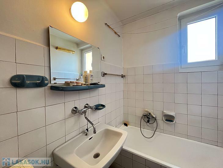 A lakás egyik nagy előnye a két fürdőszoba, melyek közül az egyik az alsó, a másik a felső szinten található, így kényelmes megoldást nyújt a mindennapokban, akár több fő számára is.