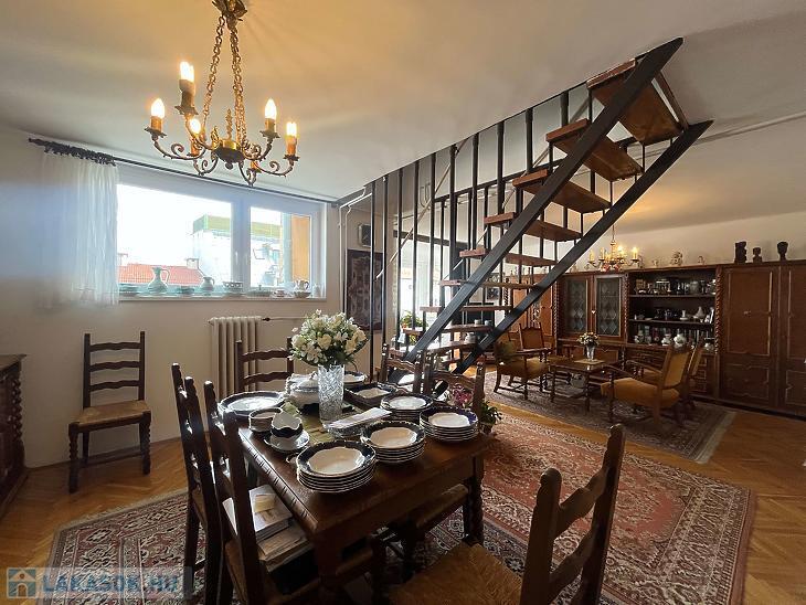 Eladó egy 88nm-es, belső két szintes jó elosztású 4 emeletes tégla építésű társasház 4. emeletén lévő1+2 félszobás lakás.