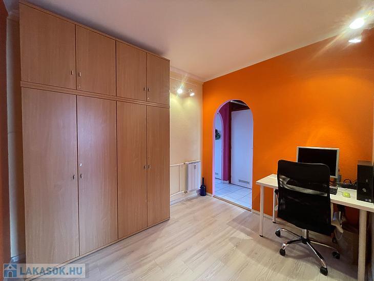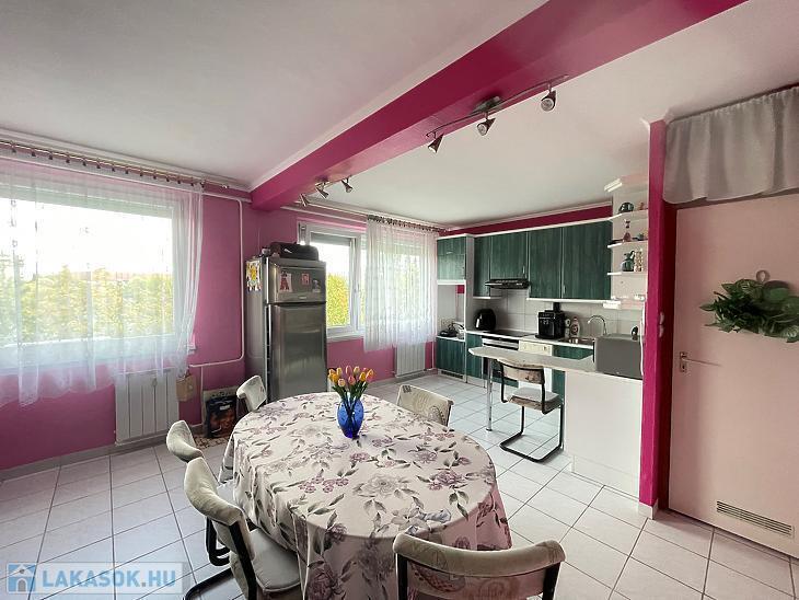 Káposztásmegyer I.-en, három emeletes cseréptetős társasház III. emeletén, 80nm-es, amerikai konyha + 2+1félszobás lakás eladó, két franciaerkéllyel. Az ingatlan közepes-jó állapotú, a nappali-konyha járólapos, a többi helyiség laminált parkettás. A nyílászárók műanyag thermo üvegesek, redőnyösek, részben szúnyoghálósok. A konyhabútort és a radiátorokat kicserélték, a fürdőszobát és a wc-t újra burkolták, új kádat szereltek be. A bejárati ajtó több ponton záródó biztonsági. A beépített bútorzat a vételár részét képezik. A környék ellátottsága kiváló, iskolák (Babits Mihály Gimnázium, Karinthy Frigyes Magyar- Angol Két Tanítási Nyelvű Általános Iskola), óvodák, sportolási lehetőségek (Jégpalota, Uszoda), számos bevásárlási lehetőségek elérhetőek. 14-es villamos és a 20E busz megállója pár perc sétára található, amellyel Újpest központ metrómegálló rövid időn belül elérhető! A hirdetésben szereplő adatok tájékoztató jellegűek!