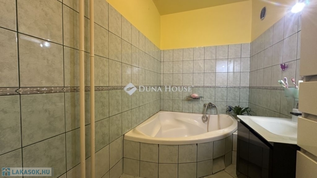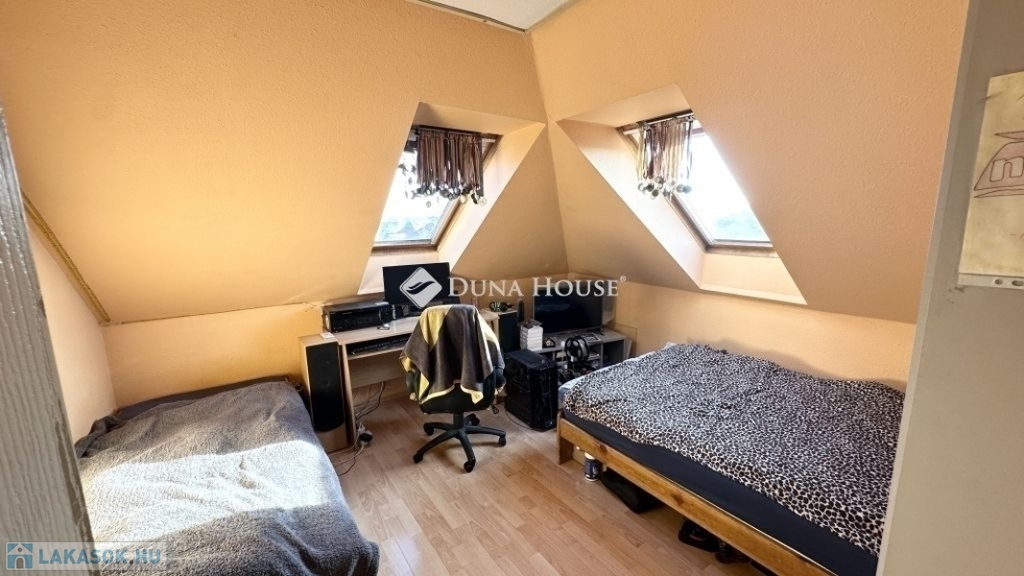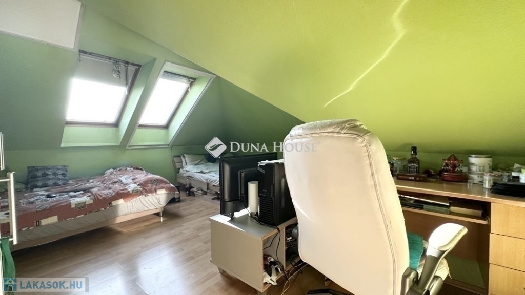A helyiségek: 4 szoba, két fürdőszoba, külön WC, konyha+étkező, előtér, közlekedő és belső lépcső.