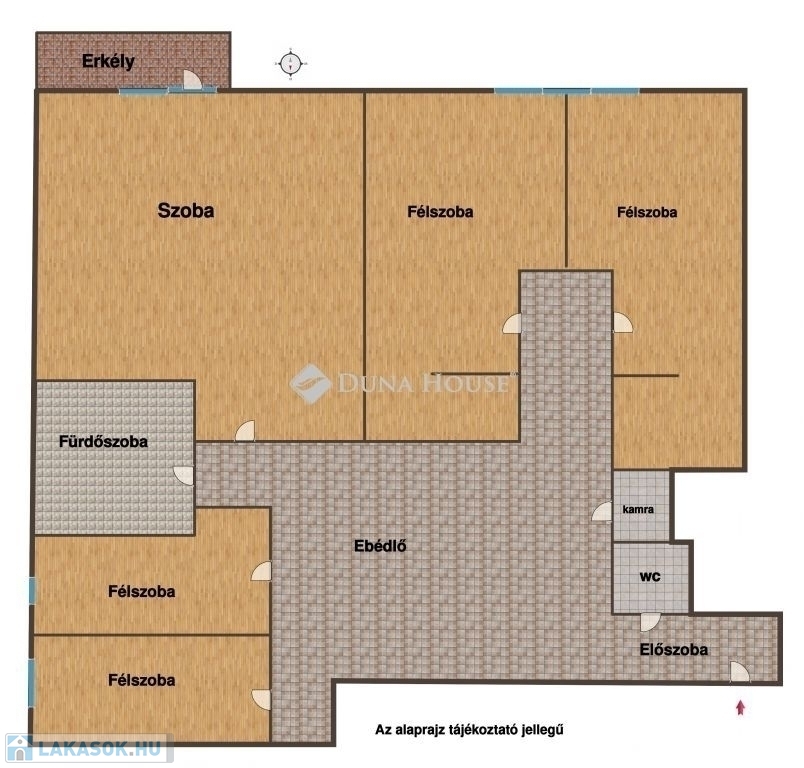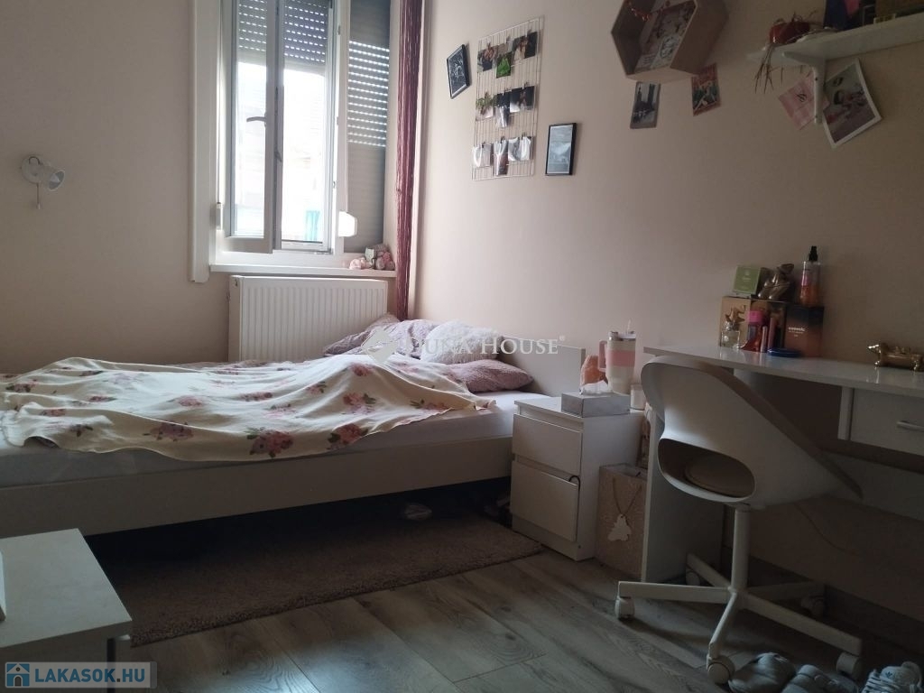 Az ingatlan jelenleg kiváló elrendezésű: 3 szoba + 2 félszoba, tágas étkezős konyha, kamra és egy kényelmes, sarokkádas fürdőszoba alkotja.