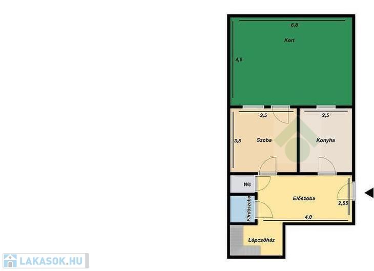 Földszint: előszoba, szoba, konyha, wc, fürdőszoba, 30nm-es kert