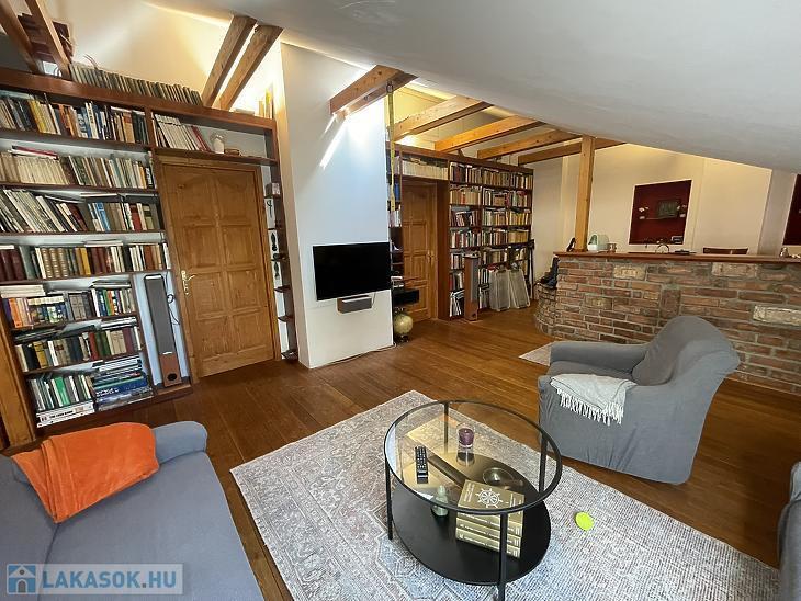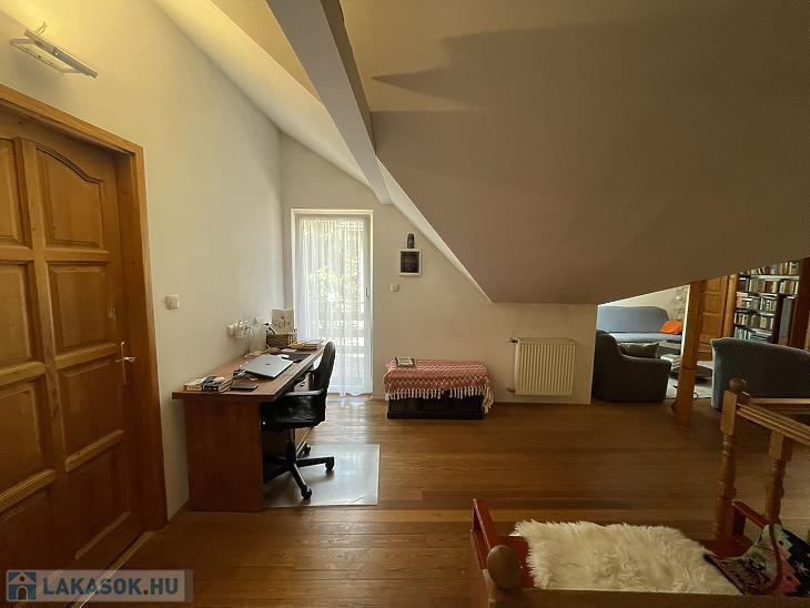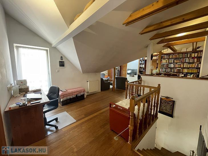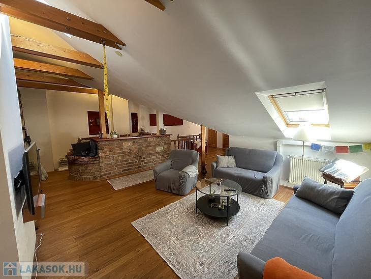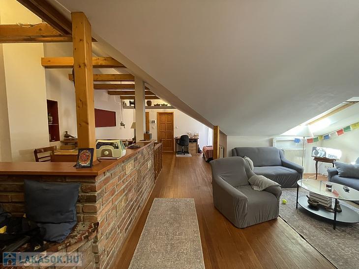 A tetőtérben 3 szoba, egy nappali, egy mini konyha, külön fürdőszoba és mellékhelyiség, gardrób, valamint egy kb. 8 nm-es terasz került kialakításra. Mindhárom szoba különnyíló, az egyikből közvetlenül egy kb. 10 nm-es gardrób helyiség nyílik.