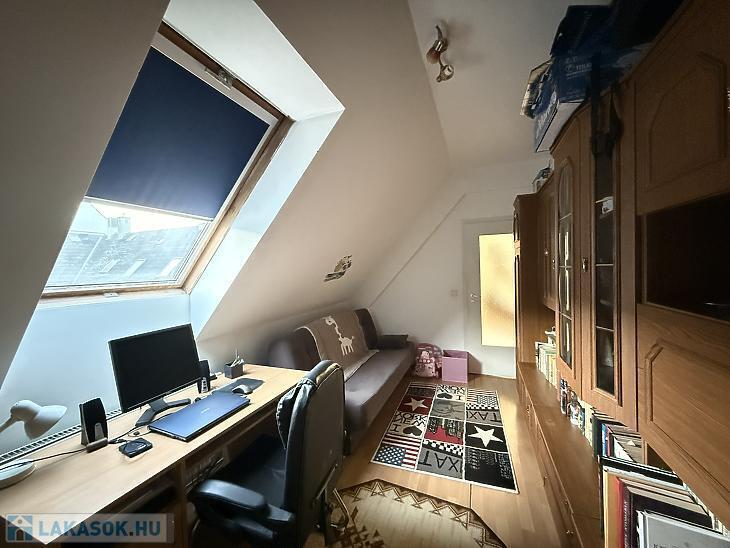 Újpesten az Árpád üzletház közelében, kiváló közlekedés mellett, szigetelt társasházban, eladásra kínálunk egy jó állapotú, nettó 88 nm-es, 1+3 félszobás, tetőtéri téglalakást.