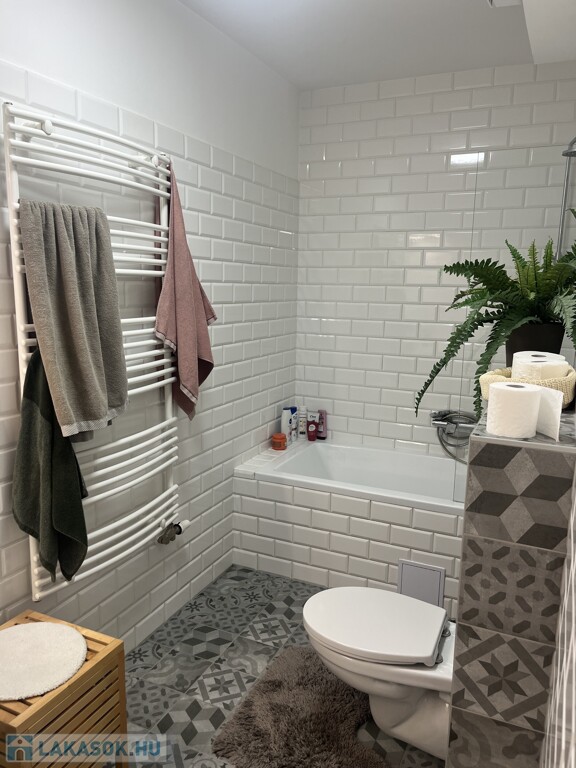 A lakás a legfelső (4.) emeleten található, de nem tetőtéri. A folyosó legvégén helyezkedik el, így nincs előtte átjárás vagy zaj. A bejárat előtt egy kb. 10 m²-es, mások által nem használt terület található, amely akár extra tárolásra is használható. Csak egy oldalon van falszomszédunk, így kimondottan csendes. A ház jól szigetelt, minden ablak háromrétegű üveg. A fűtés házközponti gázfűtés, radiátorokkal, egyedi mérőkkel. A közösköltség 68.000 Ft/hó (átlag, éves szinten), amely tartalmazza a fűtést és a vízdíjat is. Ezen felül csak a villany fizetendő.