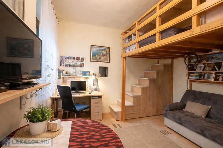 A lakás jó állapotú, praktikus elrendezésű, a belmagasságnak köszönhetően galériával bővített, így a hasznos élettér még kényelmesebben kihasználható. A galéria alatt egy kb. 2 nm-es gardrób is kialakításra került, ami plusz tárolási lehetőséget biztosít.