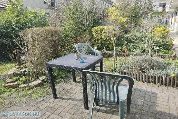 A lakás előtt egy kb. 5 nm-es terasz található, az udvar végében pedig egy kb. 40 nm-es kertrész, ami igazán különlegessé teszi ezt az ingatlant. Emellett tartozik hozzá egy kb. 4 nm-es tároló is.