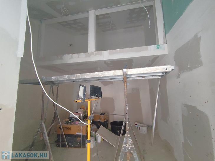 A lakás 2025-ben épült, jelenleg még tartanak a munkálatok. Az építés során új falakat és tetőt húztak fel, újak a lécek, gerendák, csatorna. Beton alapzattal rendelkezik. Kívülről 10 cm-es szigetelést kapott. Belül jelenleg a gipszkartonozási munkafolyamat zajlik. A szobába laminált padlót fognak lehelyezni, a többi helyiséget járólappal fogják burkolni. Fürdőszobájában zuhanyzót alakítanak ki. A fűtésről inverteres légkondicionáló berendezés fog gondoskodni, amit kifejezetten fűtésre optimalizáltak.