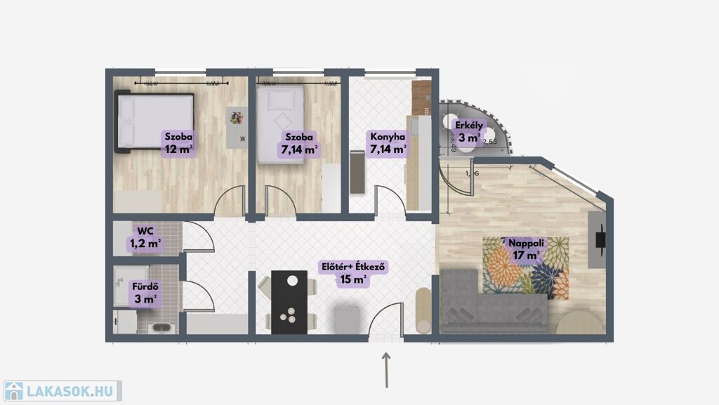 A praktikusan kialakított lakás családok számára, valamint kiadásra is megfelelő, külön bejáratos szobái miatt tanulóknak is ideális választás.