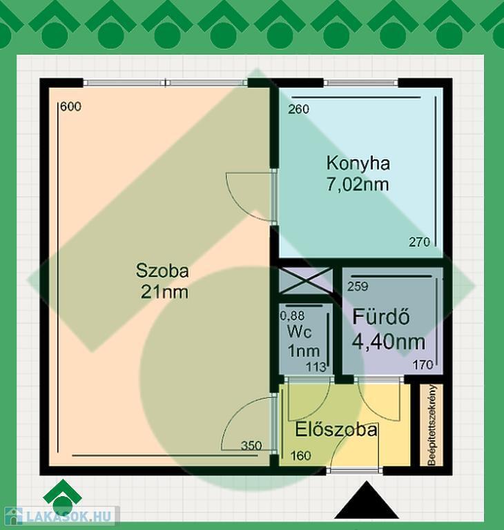 Igény esetén, könnyedén átalakítható 1,5 szobássá, a konyha átfordításával.