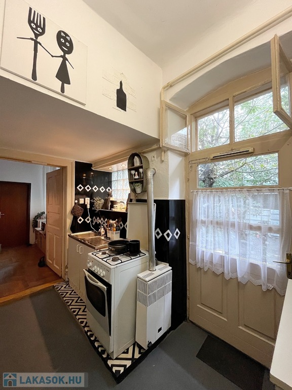 A lakás keleti fekvésű, belmagassága 3,15 méter, jelenlegi fűtését gázkonvektorok biztosítják. A nyílászárók műanyagok, 3 évvel ezelőtt cserélték őket. A konyha beépített bútorral rendelkezik, a fürdő zuhanyzós kialakítású. A lakáshoz praktikus kamra is tartozik, valamint 4 különálló udvari tároló és egy saját pincehelyiség is rendelkezésre áll.