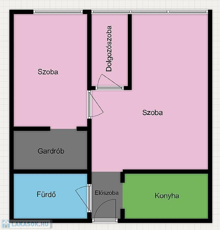 46 nm-es, 1+1 félszoba + külön dolgozószobás, jó állapotú, nyugati fekvésű,