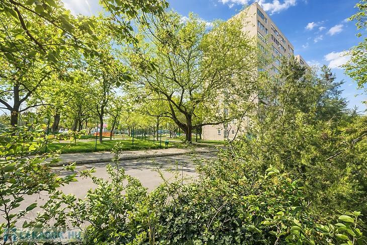 Parkos, zöld környezetben, 2 liftes társasház VIII. emeletén kínálunk megvételre egy