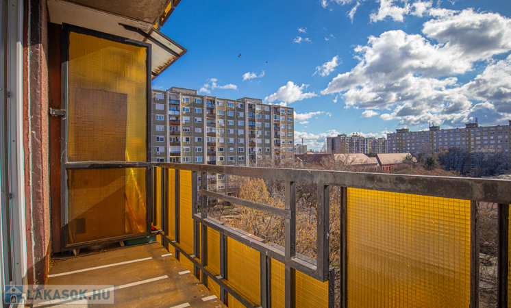 Eladó a IV. kerületben Újpest-központ városrészben a csendes Munkásotthon utcában egy jó állapotú, részben szigetelt panelházban lévő V. emeleti, 53nm-es, 2 szoba + konyhás, D-i fekvésű, napfényes lakás 4nm-es loggiával.