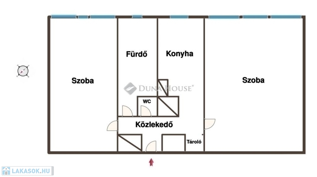 Két külön bejáratú szoba, előszoba, konyha, fürdőszoba és a WC külön helységben, kényelmes mozgásteret biztosít.