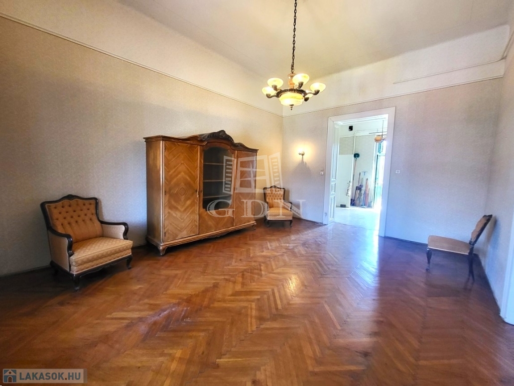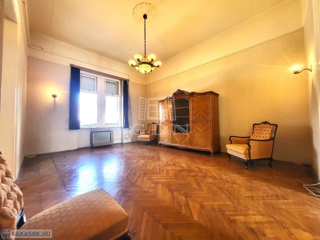 A szobák világosak, tágasak, burkolatuk eredeti faparketta az ablakok utcára néznek.