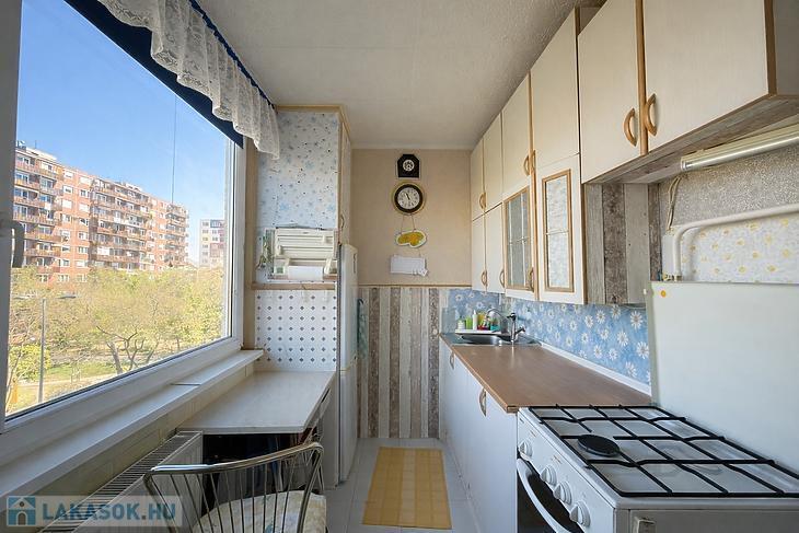 Újpest-központ közelében, csendes, parkos környezetben, liftes társasház III. emeletén kínálunk megvételre egy 60 nm-es, 2+1 félszoba + hallos elosztású, kétfekvéses, erkélyes panellakást, beköltözhető állapotban.