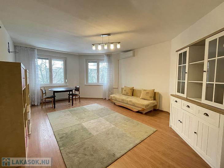Káposztásmegyer I.-en, három emeletes cseréptetős társasház II. emeletén, 65nm-es 1+2félszobássá alakított, KLÍMÁS lakás eladó. Az ingatlan közepes-jó állapotú, a nappali és az előszoba laminált parkettás, a két félszoba padlószőnyeges, a fürdőszoba járólapos, a konyha pedig vinyl burkolatot kapott. A nyílászárók műanyag thermo üvegesek, redőnyösek, szúnyoghálósok. A konyhabútort, a radiátorokat, illetve a félszobákban a belső ajtókat kicserélték. A fürdőszobát megnagyobbították, zuhanyzót és kádat is beszereltek. A bejárati ajtó több ponton záródó biztonsági. A beépített bútorzat a vételár részét képezik. A lakáshoz tartozik egy közös 20nm-es tároló is. Tehermentes! A környék ellátottsága kiváló, iskolák (Babits Mihály Gimnázium, Karinthy Frigyes Magyar- Angol Két Tanítási Nyelvű Általános Iskola), óvodák, sportolási lehetőségek (Jégpalota, Uszoda), számos bevásárlási lehetőségek elérhetőek. 14-esvillamos megállója pár perc sétára található, amellyel Újpest központ metrómegálló rövid időn belül elérhető! A hirdetésben szereplő adatok tájékoztató jellegűek!