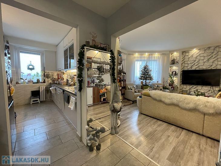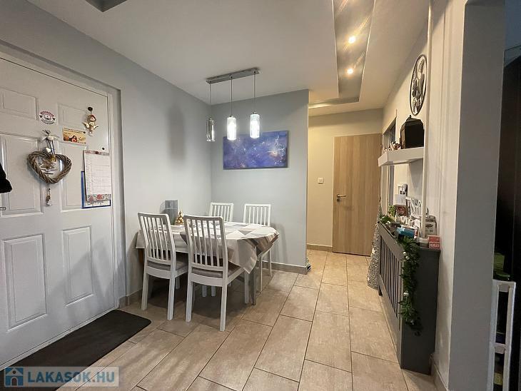 Az ingatlant 2019.-ben teljeskörűen felújították. A villany-vezetékeket áthúzták, a nyílászárók műanyag thermo üvegesek, redőnyösek, szúnyoghálósok. A szobák laminált parkettások, a többi helyiség járólapos, a radiátorokat, a belső ajtókat és a beépített szekrényt kicserélték. A konyhabútort modernizálták, kibővítették és gépesítették. A fürdőszobában épített zuhanyzót alakítottak ki, új szanitereket és törölköző szárítót szereltek be. A nappali és a hall SPOT lámpás világítást kapott, a bejárati ajtó több ponton záródó biztonsági. A beépített bútorzat a vételár részét képezik. Tehermentes! A lakáshoz tartozik egy közös, 40nm-es tároló is.