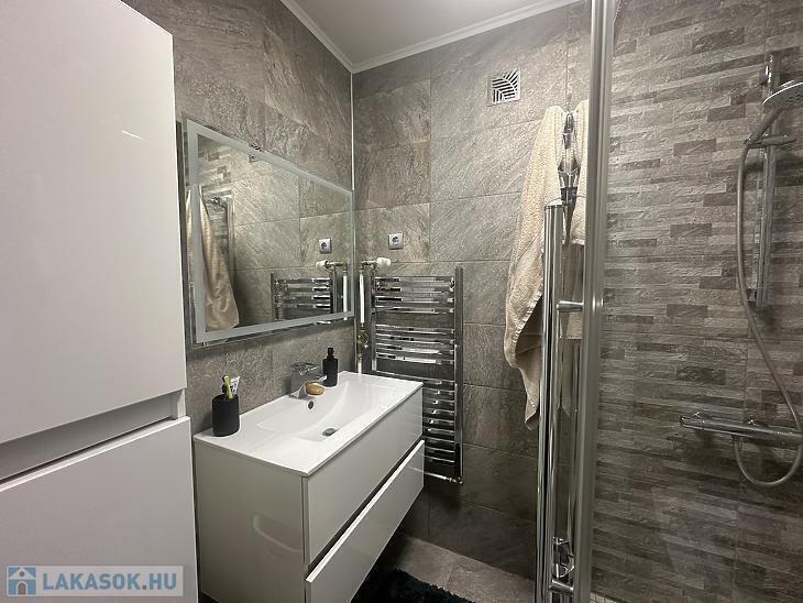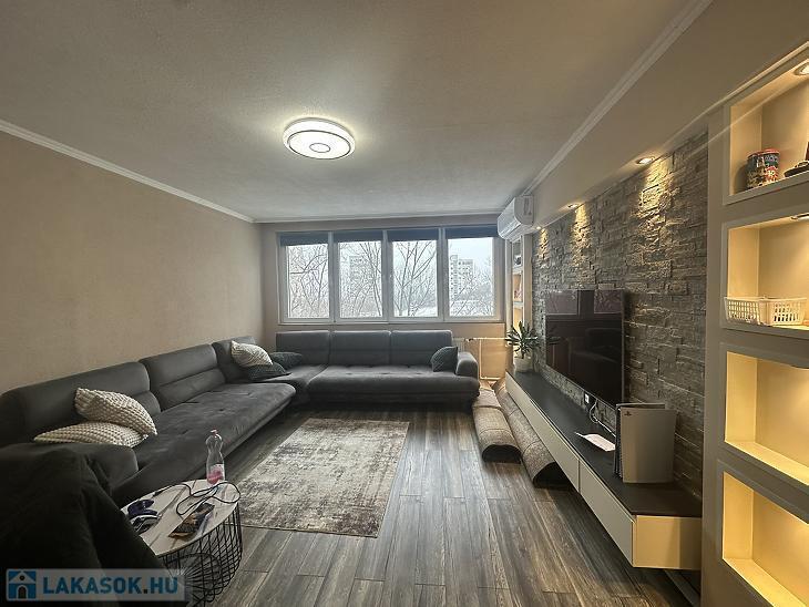 A lakás 3 évvel ezelőtt teljeskörű felújításon esett át, melynek keretein belül megtörtént a teljes víz és villanyhálózat korszerűsítése. Több ponton záródó biztonsági bejárati ajtót, modern beltéri ajtókat és sötétítővel felszerelt műanyag keretes, thermo üveges nyílászárókat építettek be. A szobákban laminált padlót helyeztek le, a többi helyiséget járólappal burkolták. A fűtőtestek cseréje is megtörtént, új lapradiátorokat szereltek fel. A nappaliba a nagyobb komfortérzet kialakításának érdekében egy hűtő-fűtő inverteres légkondicionáló berendezést is felszerelésre került. Konyhája ablakos, világos, a konyhabútor a vételár részét képezi. A vételár továbbá tartalmazza a lakás teljes bútorzatát, gépesítéssel együtt.