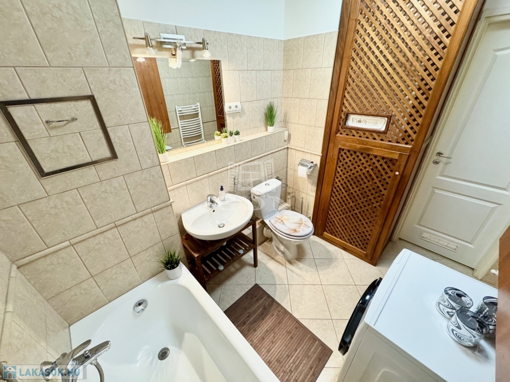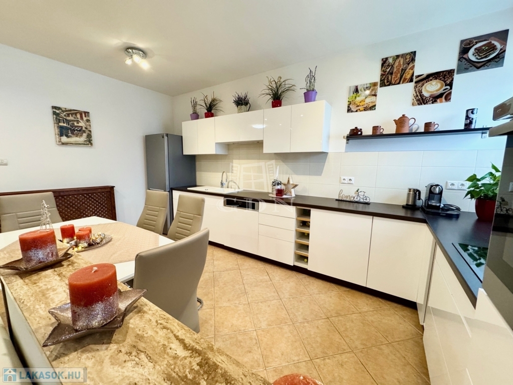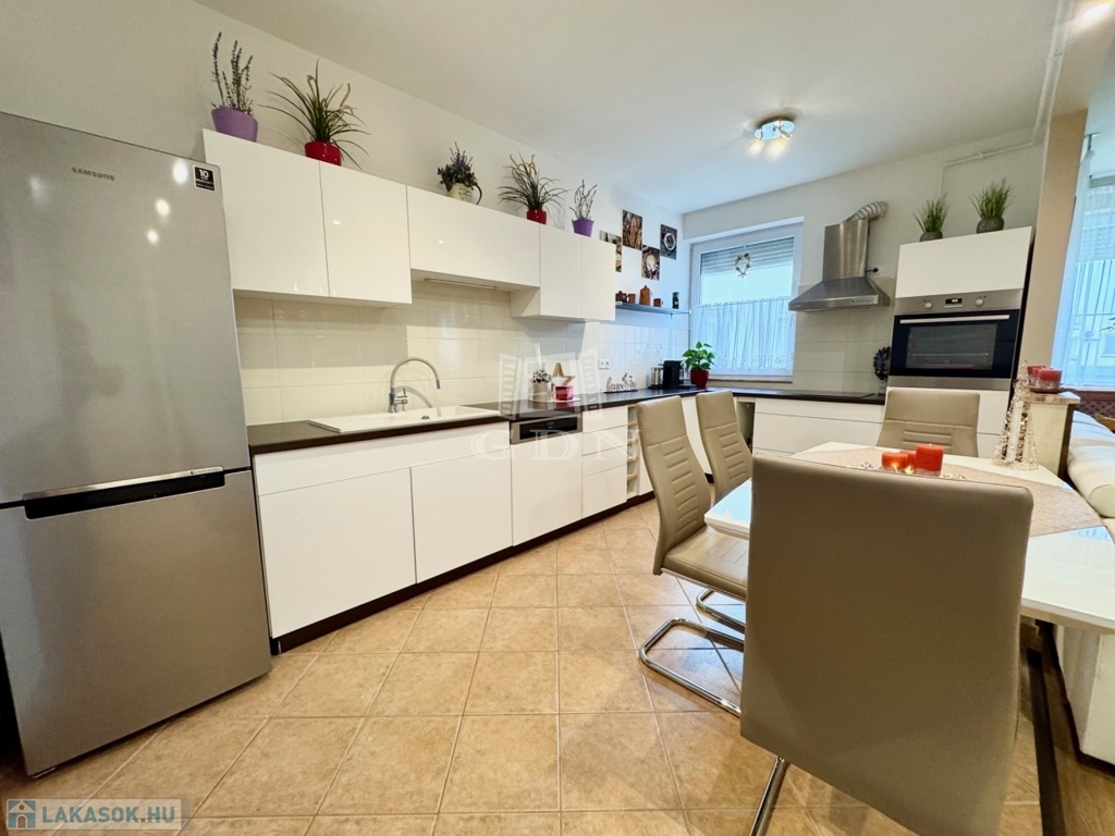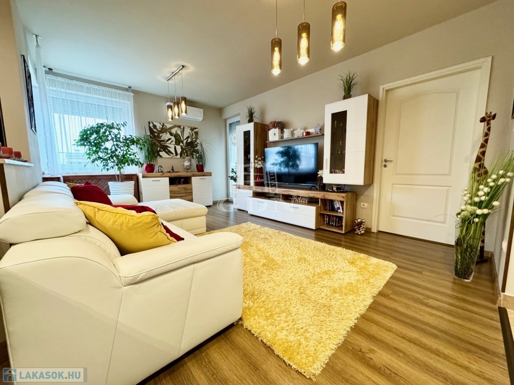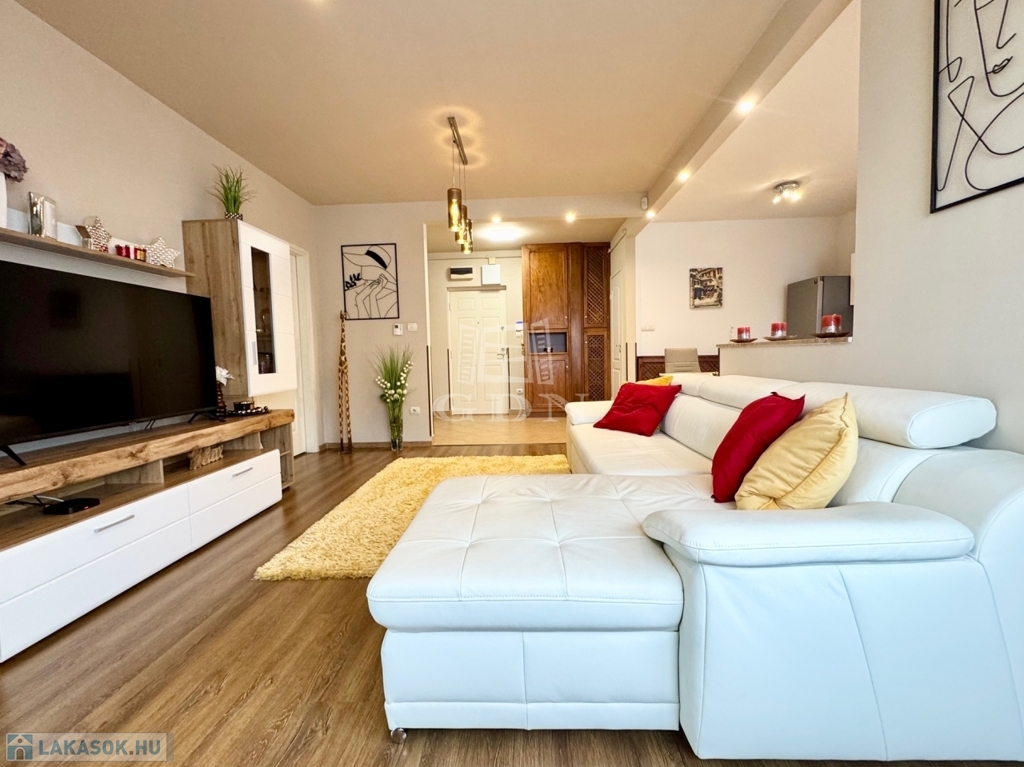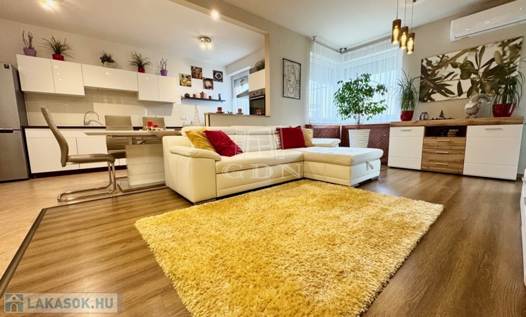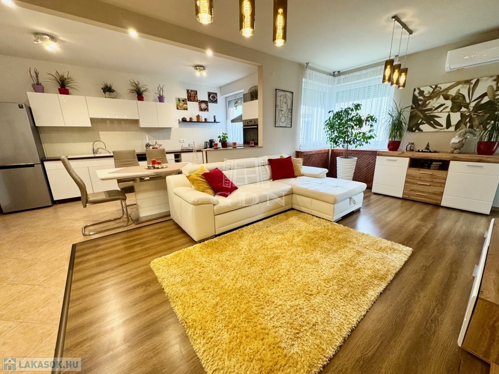 IV. kerületben, kertvárosi környezetben, kitűnő közlekedés és ellátottság mellett, csendes utcában, Szilaspatak lakóparkban, 2002-ben, magas műszaki színvonalon épült, 3.szintes, exkluzív megjelenésű társasházban, 2. emeleti, kiváló elosztású, 57 nm-es, 2 szobás, amerikai konyhás, napos-világos K-NY-i fekvésű, kombinált gázcirkó fűtésű, alacsony fenntartású, közös költség felújítási alappal 13.800 Ft, egyedi mérésű, újszerű állapotú, klimatizált lakás, beépített gépesített konyhával, külön pénzügyi megállapodás mellett akár a teljes bútorzattal, kulturált lakóközösségű házban eladó.