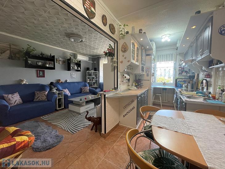 Az ingatlan jó állapotú, a nyílászárók eredeti, műanyag thermo üvegesek, a szobák laminált parkettásak, a többi helyiség járólapos. A konyhabútort kicserélték, a villany-vezetékeket részben áthúzták, a fürdőszoba teljes felújítása (vízcsövek, épített zuhany lefolyórendszerrel, szellőző rendszer, járólap, csempe) 1 hónapja megtörtént.