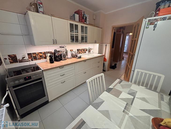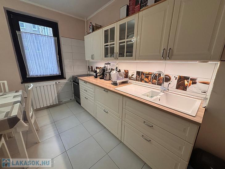 Az ingatlan jó-felújított állapotú, a villany-vezetékeket részben áthúzták alumíniumról rézre, új biztosító dobozt szereltek fel. Az ablakok műanyag thermo üvegesek (konyhában és a kisebb szobában fa típusú thermo üvegesek, hálóban redőnyös). A szobák laminált parkettások, a többi helyiség járólapos, a a wc és a fürdőszoba új burkolatot, kádat és szanitereket kapott. A konyhabútort, a víz-vezetékeket, a belső ajtókat és a radiátorokat kicserélték. A bejárati ajtó több ponton záródó, biztonsági. Tehermentes!
