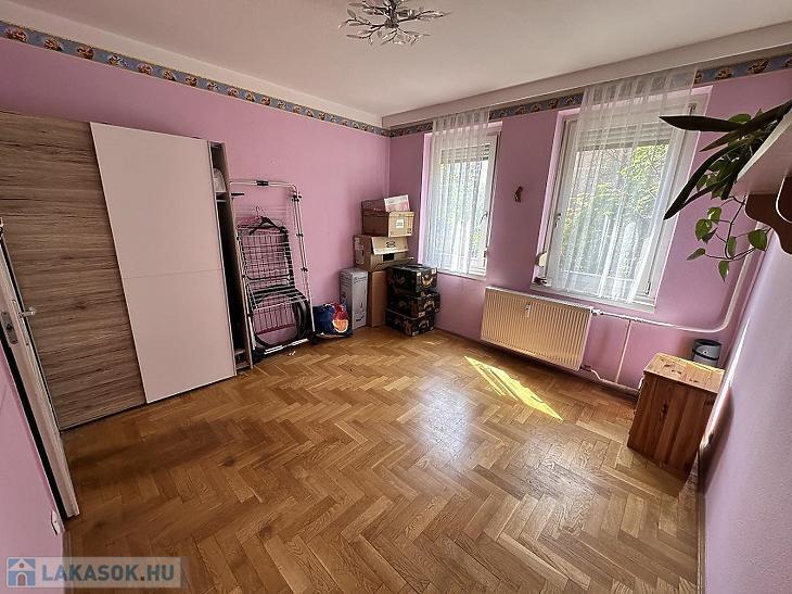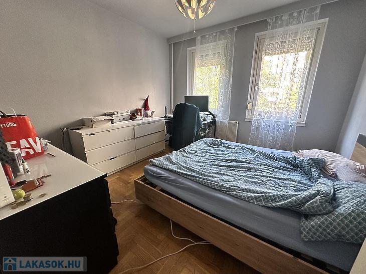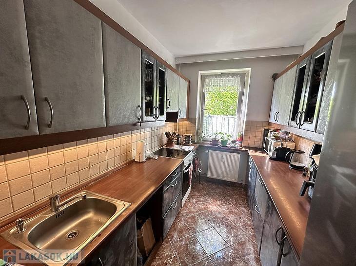 A lakás jó állapotú, a nyílászárók fa típusú thermo üvegesek, redőnyösek, a szobák laminált parkettásak, a többi helyiség járólapos. A konyhabútort kicserélték, a fürdőszoba új burkolatot kapott. A beépített bútorzat a vételár részét képezik.