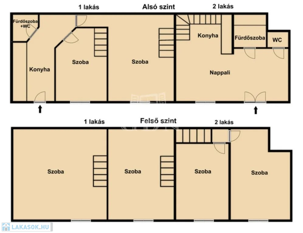 2 külön bejáratú lakás, külön közműórákkal, megosztási szerződéssel