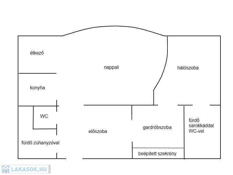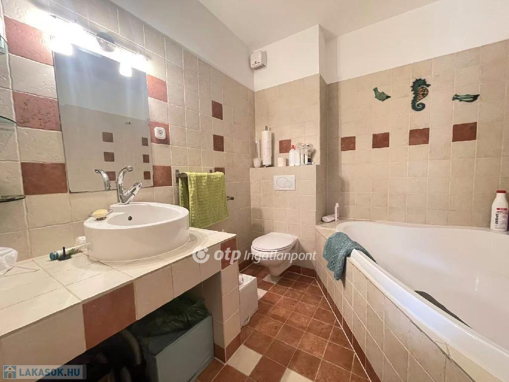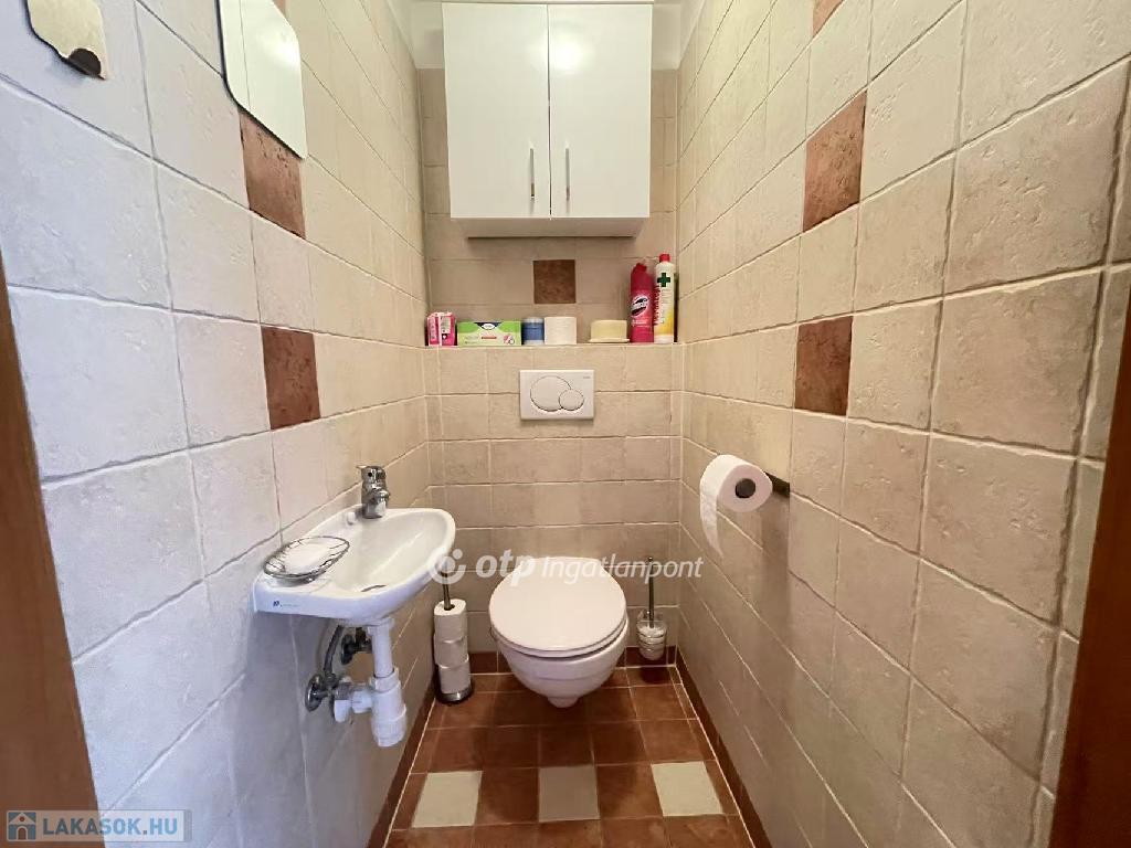 Az előszobából nyílik egy kisebb, zuhanyzós fürdőszoba, mellette külön helyiségben található a WC.
