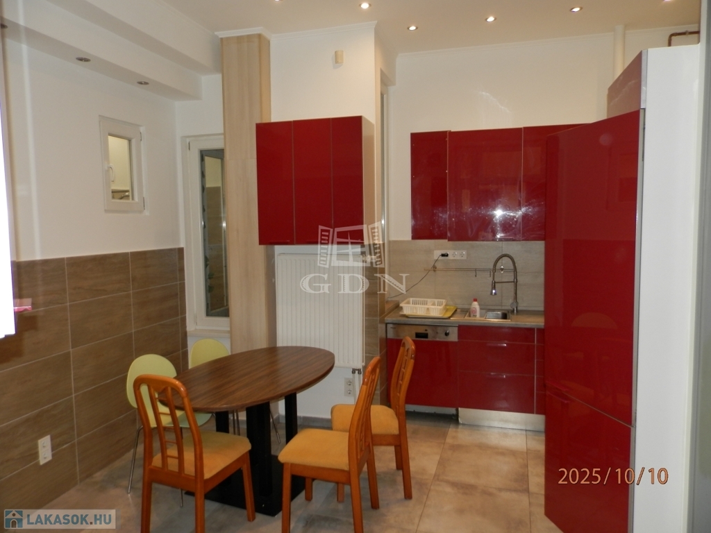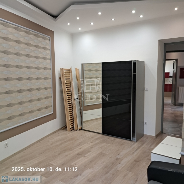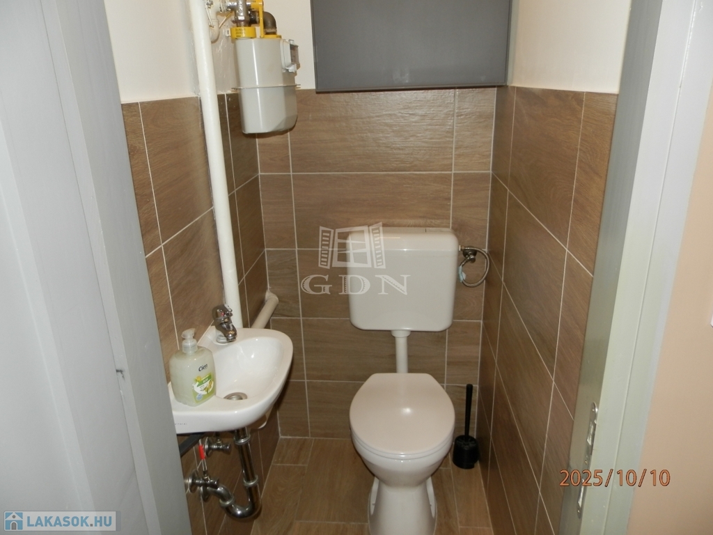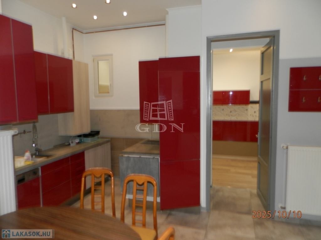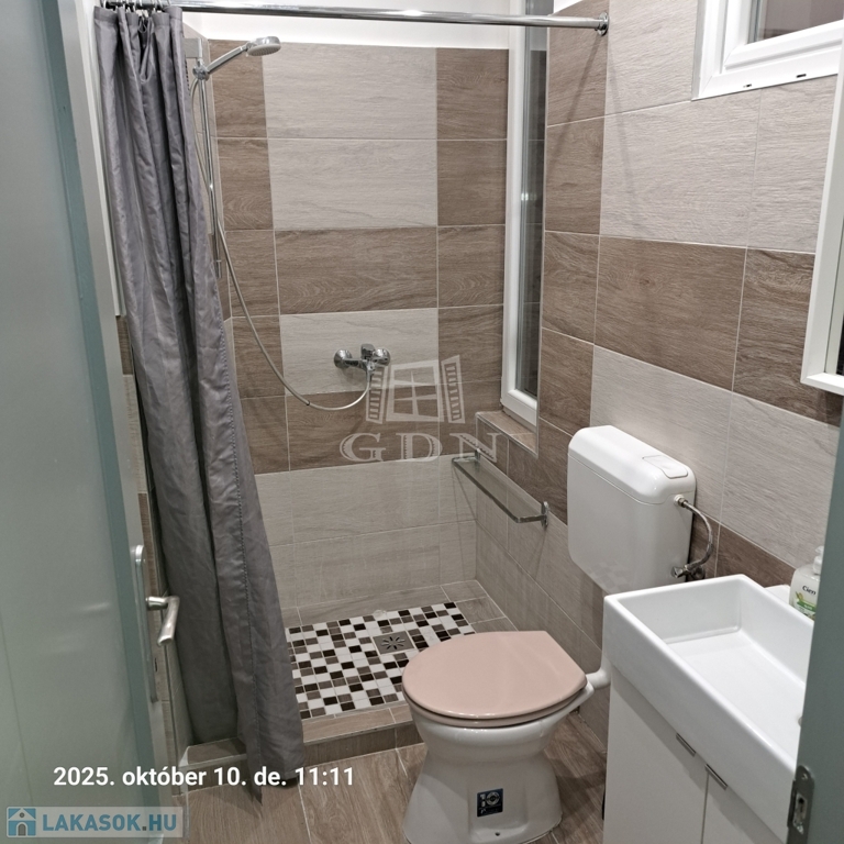 A 58 m²-es lakás tágas, világos, két fürdőszobás, akár két külön bérlő számára is ideális.