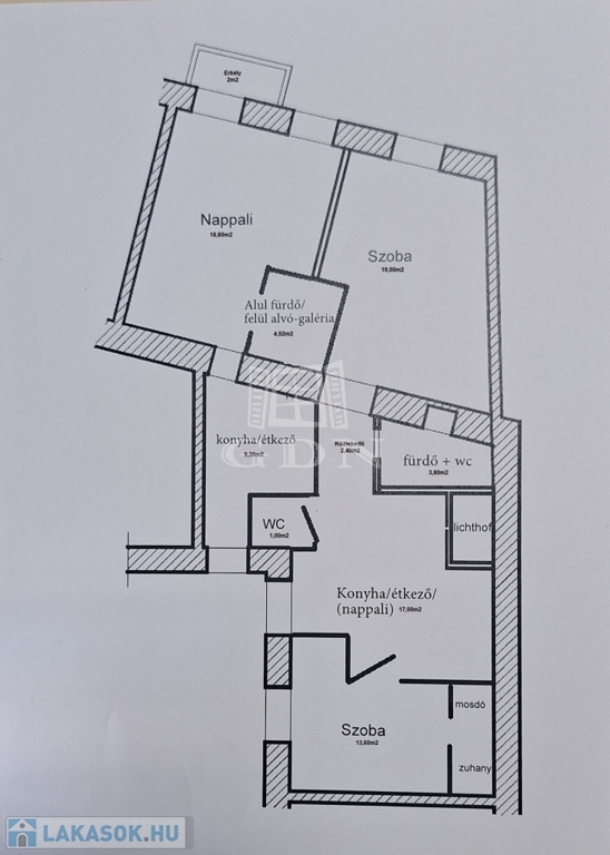 A 33 m²-es garzon galériázott, erkélyes, gépesített konyhával – tökéletes kis városi kuckó.