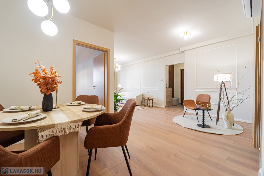 Tulajdonostól eladó egy teljes körűen 2025-ben felújított, kulcsrakész, azonnal költözhető 60 m²-es, 2 szobás lakás, hatalmas 14,5 m²-es terasszal. Modern design, új, minőségi anyagok, bútorozott állapot – ritka lehetőség a piacon!