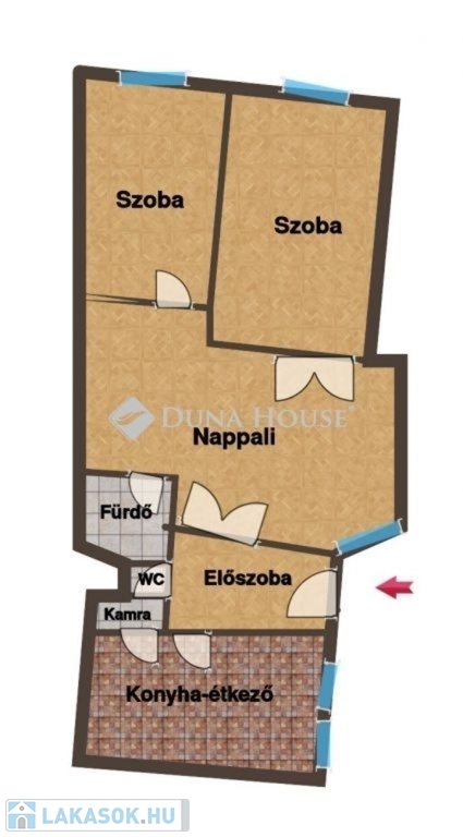 A lakás elrendezése rendkívül praktikus és otthonos: