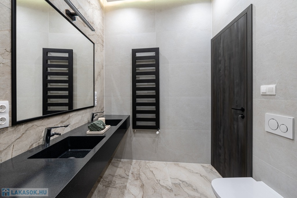 2 külön nyíló hálószoba, 2 teljes értékű fürdőszoba (egyik zuhanyzós, másik kádas, mindkettőben WC)