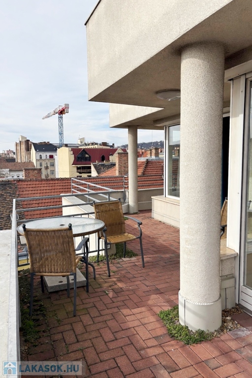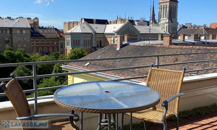 For sale: a one-of-a-kind, 6th-floor, 3-room apartment with exceptional features in the most sought-after part of the 9th District, right next to the newly renovated Bakáts Square. This property is a true rarity in the downtown market: situated above the surrounding houses, it offers total privacy and intimacy without being overlooked by neighbors.