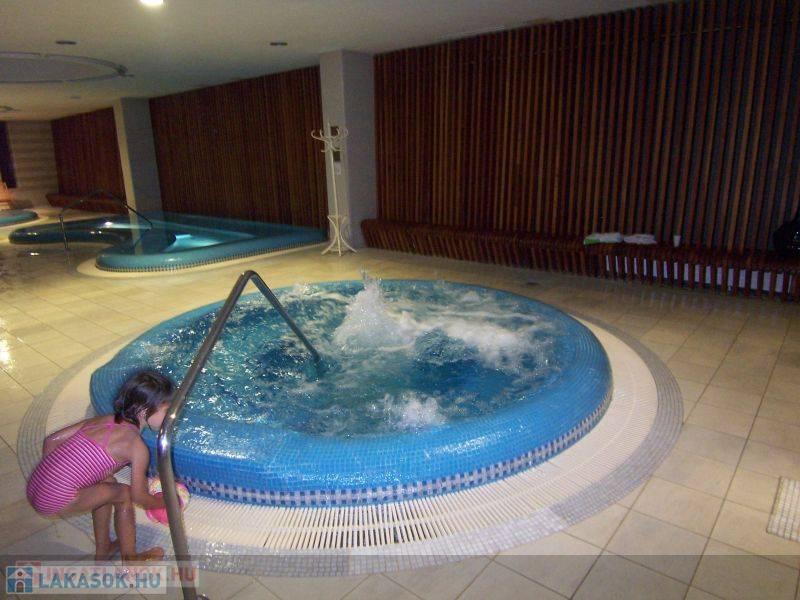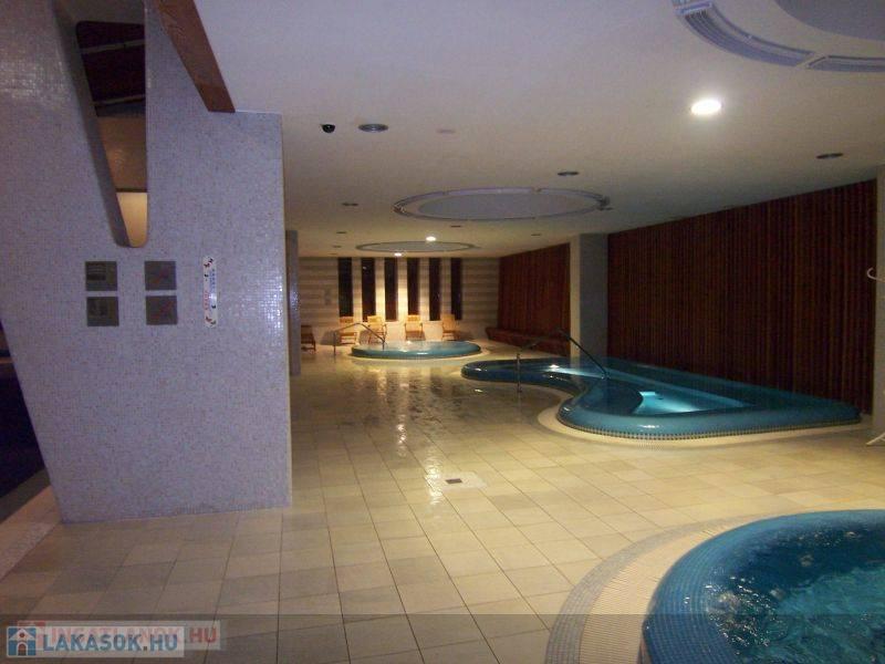 Van nagy beltéri úszómedence, gyerek medence, termálvizes medence, jakuzzi, szauna, squash pályák, felszerelt tornaterem, edző és masszőr is külön díjazás nélkül jár e ház elit lakóknak.