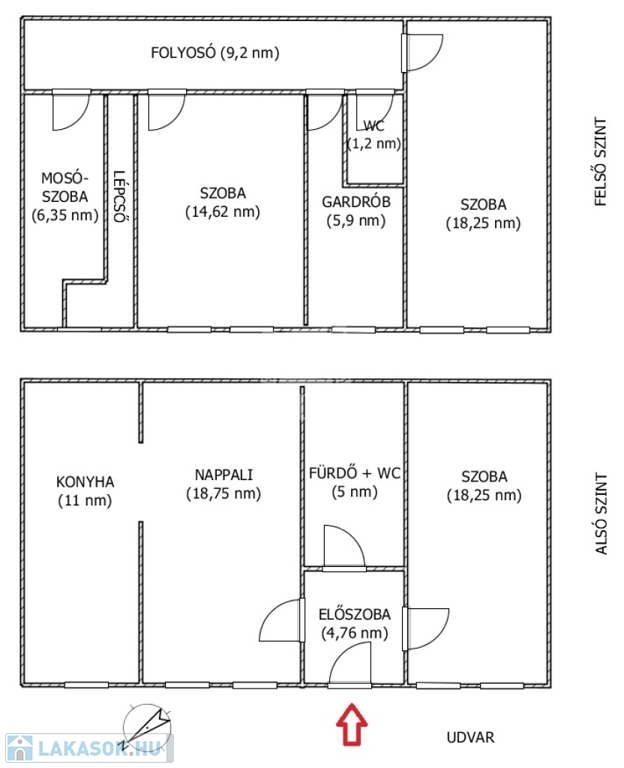 -Belmagasság: 5,2 m, tágas, levegős térérzet - alsó szint: 2,55 m, felső szint: 2,18 m.